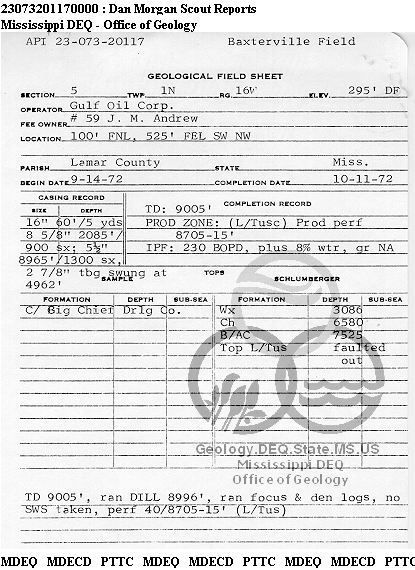 | 1 | 23073201170000 | TELLUS OPERATING GROUP LLC | J M ANDREW | 59 | Oil Production |