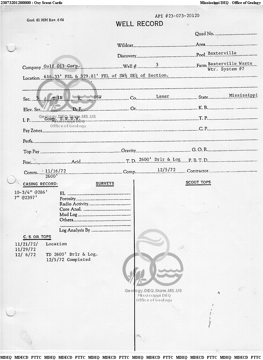 | 1 | 23073201200000 | TELLUS OPERATING GROUP LLC | WWS 7 WELL | 3 | Disposal |