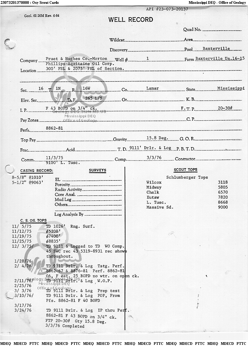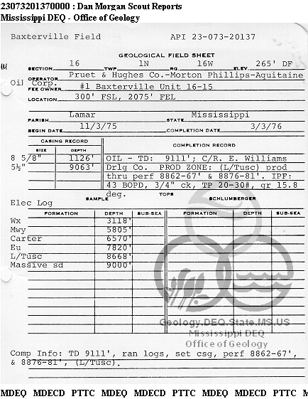 | 1 | 23073201370000 | TEXAS PETROLEUM INVESTMENT CO | BAXTERVILLE 16-15 | 1 | Oil Production |