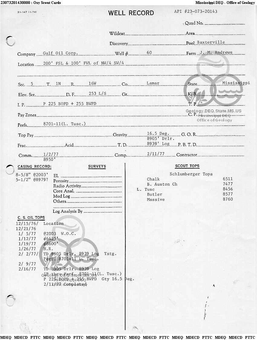 | 1 | 23073201430000 | TELLUS OPERATING GROUP LLC | J M ANDREW | 60 | Oil Production |