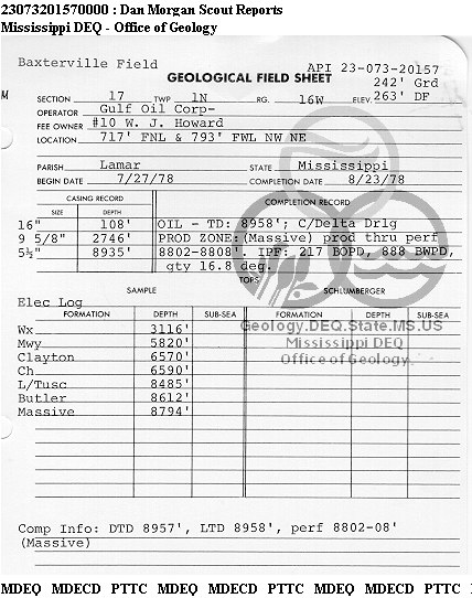 | 1 | 23073201570000 | TELLUS OPERATING GROUP LLC | W J HOWARD | 10 | Oil Production |