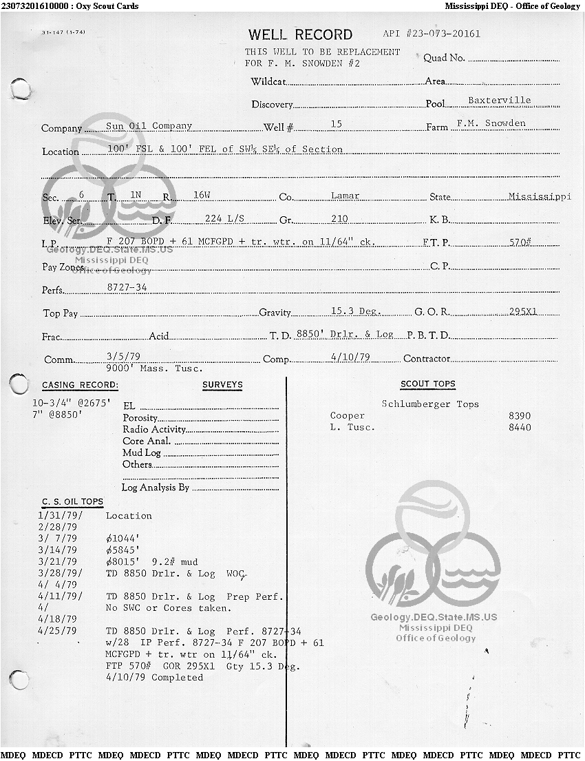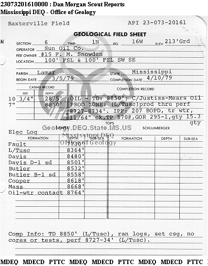 | 1 | 23073201610000 | TELLUS OPERATING GROUP LLC | F M SNOWDEN | 15 | Oil Production |