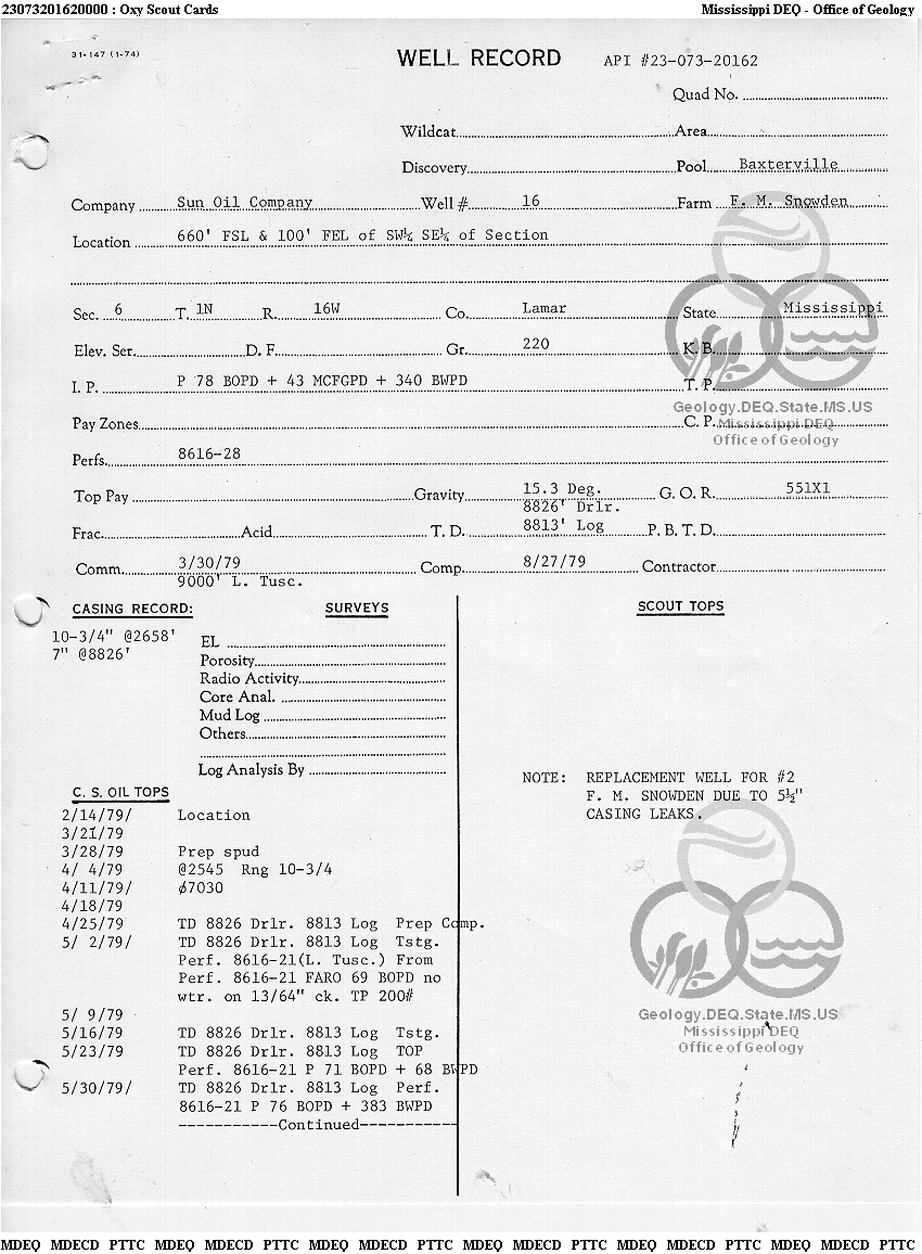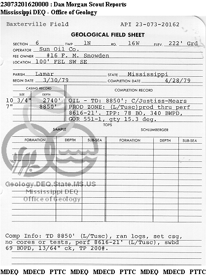 | 1 | 23073201620000 | TELLUS OPERATING GROUP LLC | F M SNOWDEN | 16 | Production |