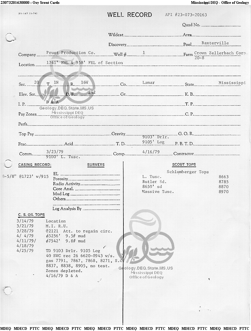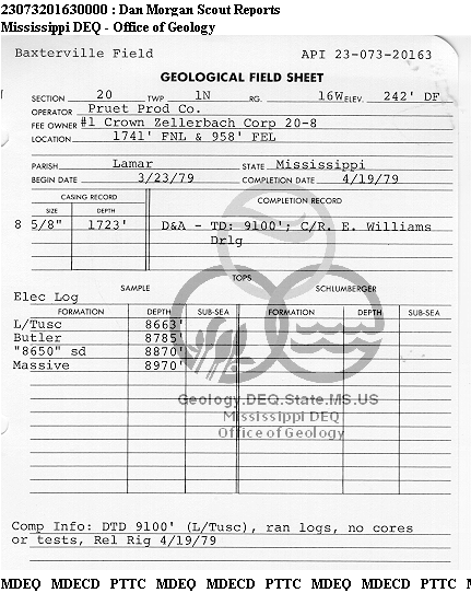 | 1 | 23073201630000 | PRUET PRODUCTION CO | C ZELLERBACH CORP 20-8 | 1 | Dry Hole |