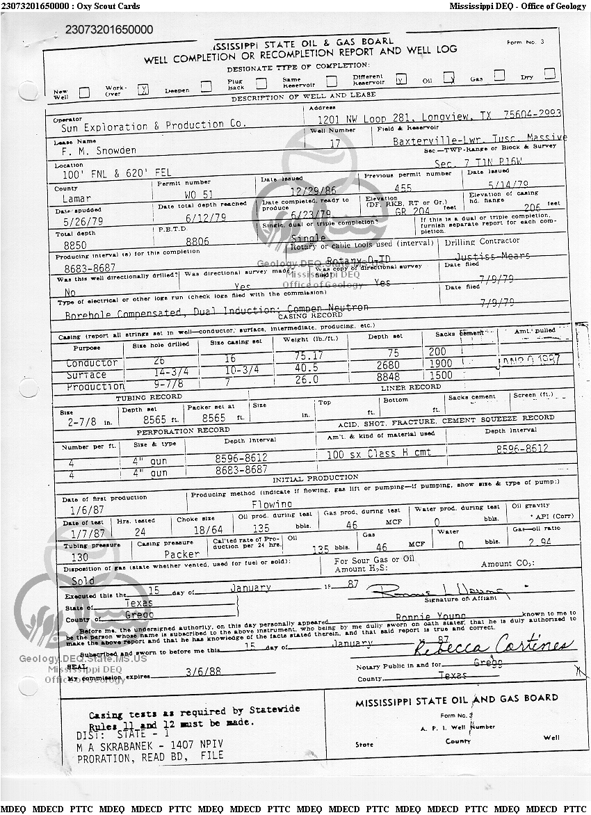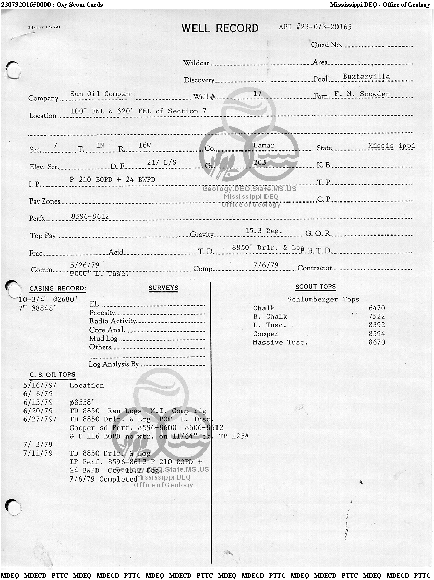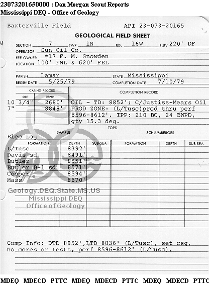 | 1 | 23073201650000 | TELLUS OPERATING GROUP LLC | F M SNOWDEN | 17 | Oil Production |