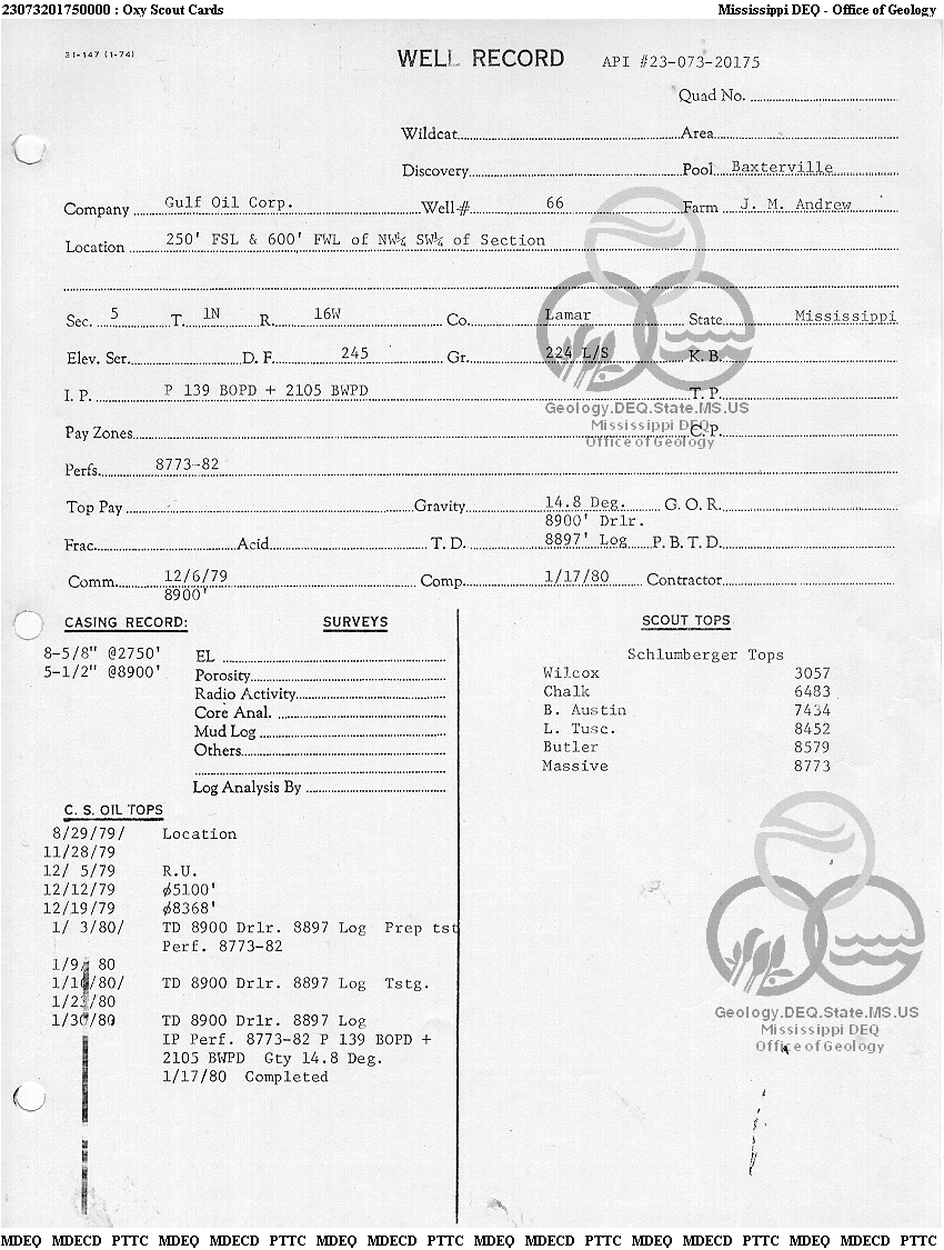 | 1 | 23073201750000 | TELLUS OPERATING GROUP LLC | J M ANDREW | 66 | Production |