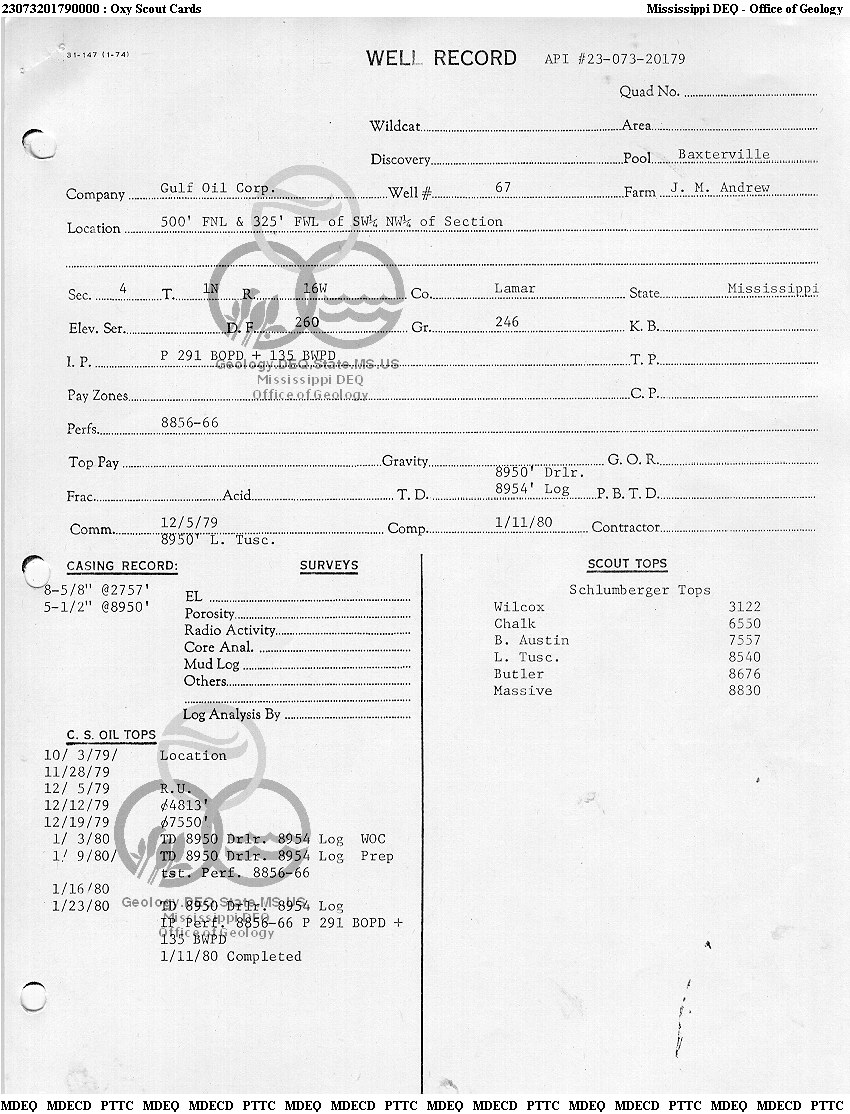 | 1 | 23073201790000 | TELLUS OPERATING GROUP LLC | J M ANDREW | 67 | Oil Production |
