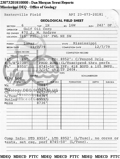 | 1 | 23073201810000 | TELLUS OPERATING GROUP LLC | J M ANDREW | 70 | Oil Production |