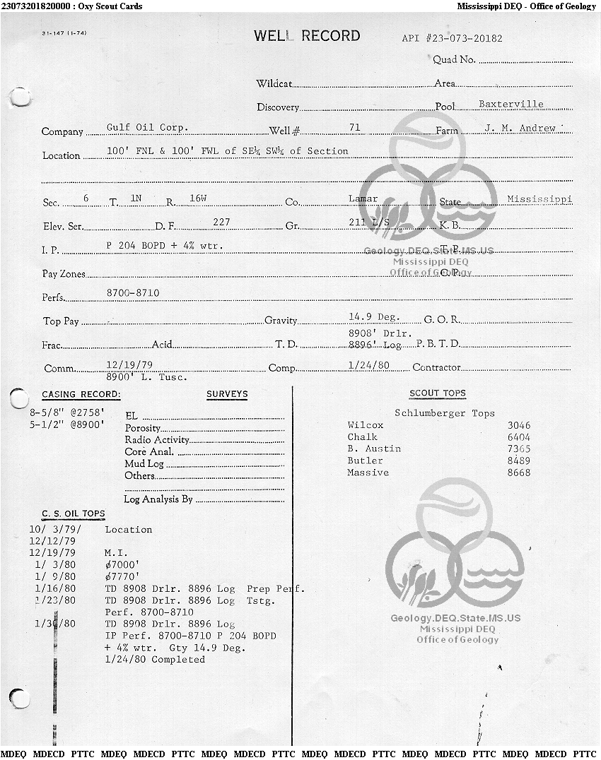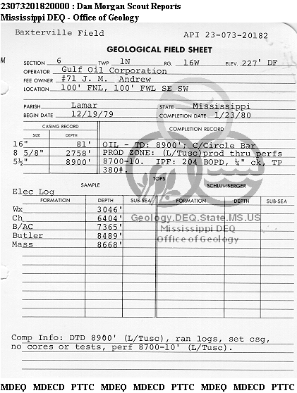 | 1 | 23073201820000 | TELLUS OPERATING GROUP LLC | J M ANDREW | 71 | Oil Production |
