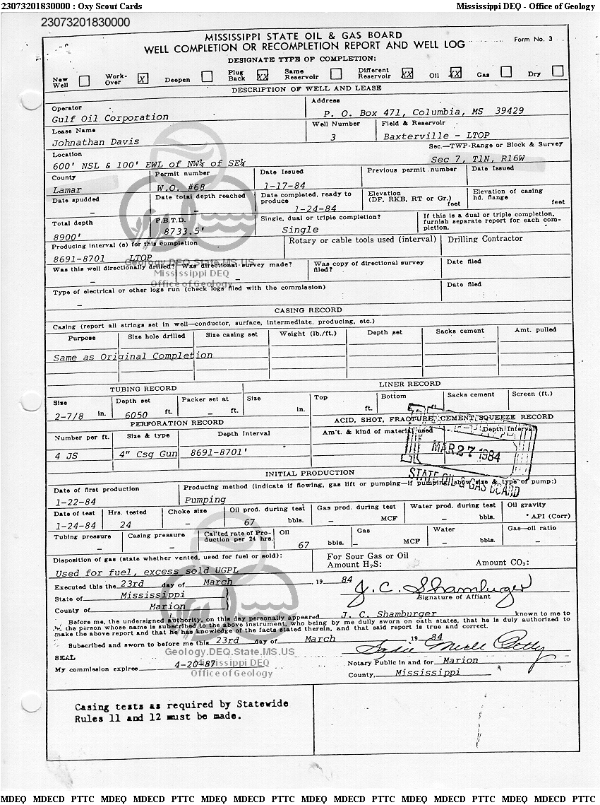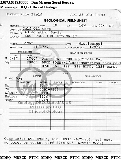 | 1 | 23073201830000 | TELLUS OPERATING GROUP LLC | JONATHAN DAVIS | 3 | Oil Production |
