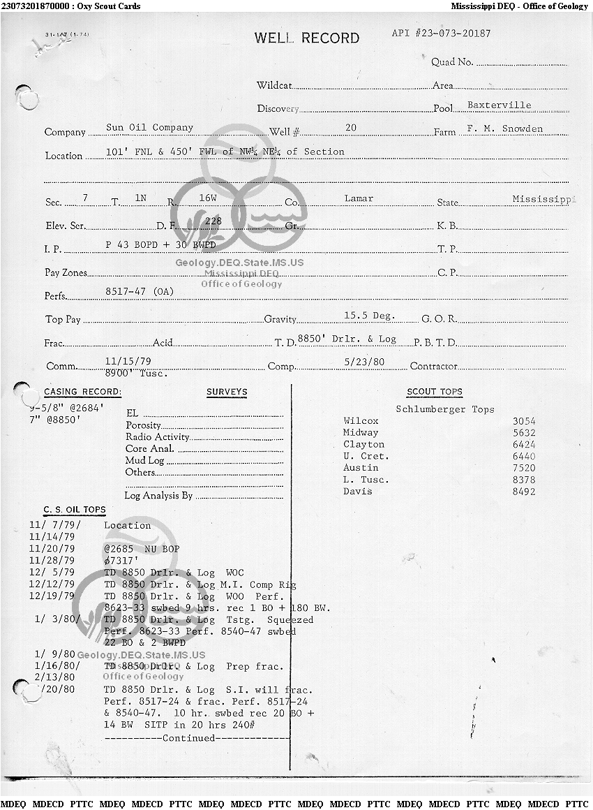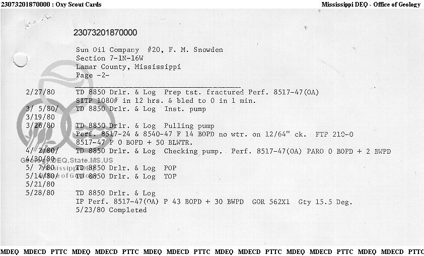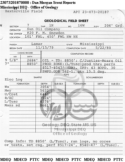| 1 | 23073201870000 | TELLUS OPERATING GROUP LLC | SNOWDEN F M | 20 | Oil Production |