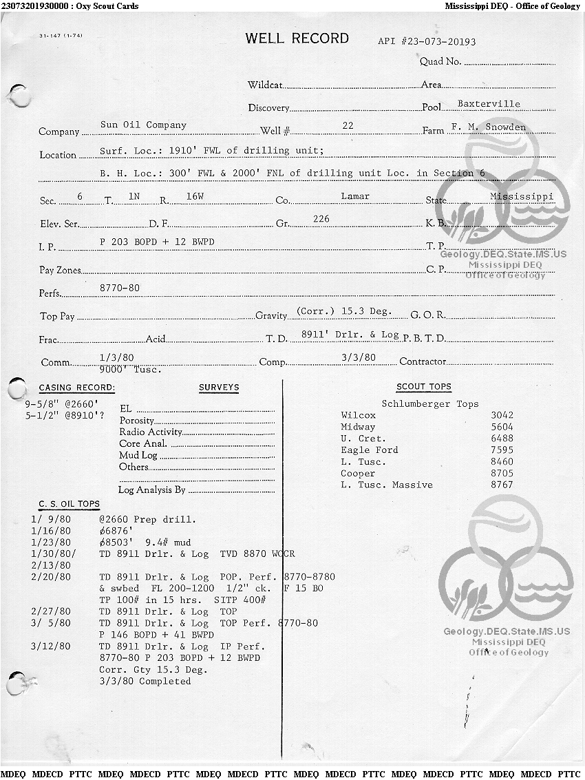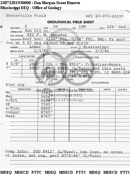 | 1 | 23073201930000 | TELLUS OPERATING GROUP LLC | F M SNOWDEN | 22 | Oil Production |