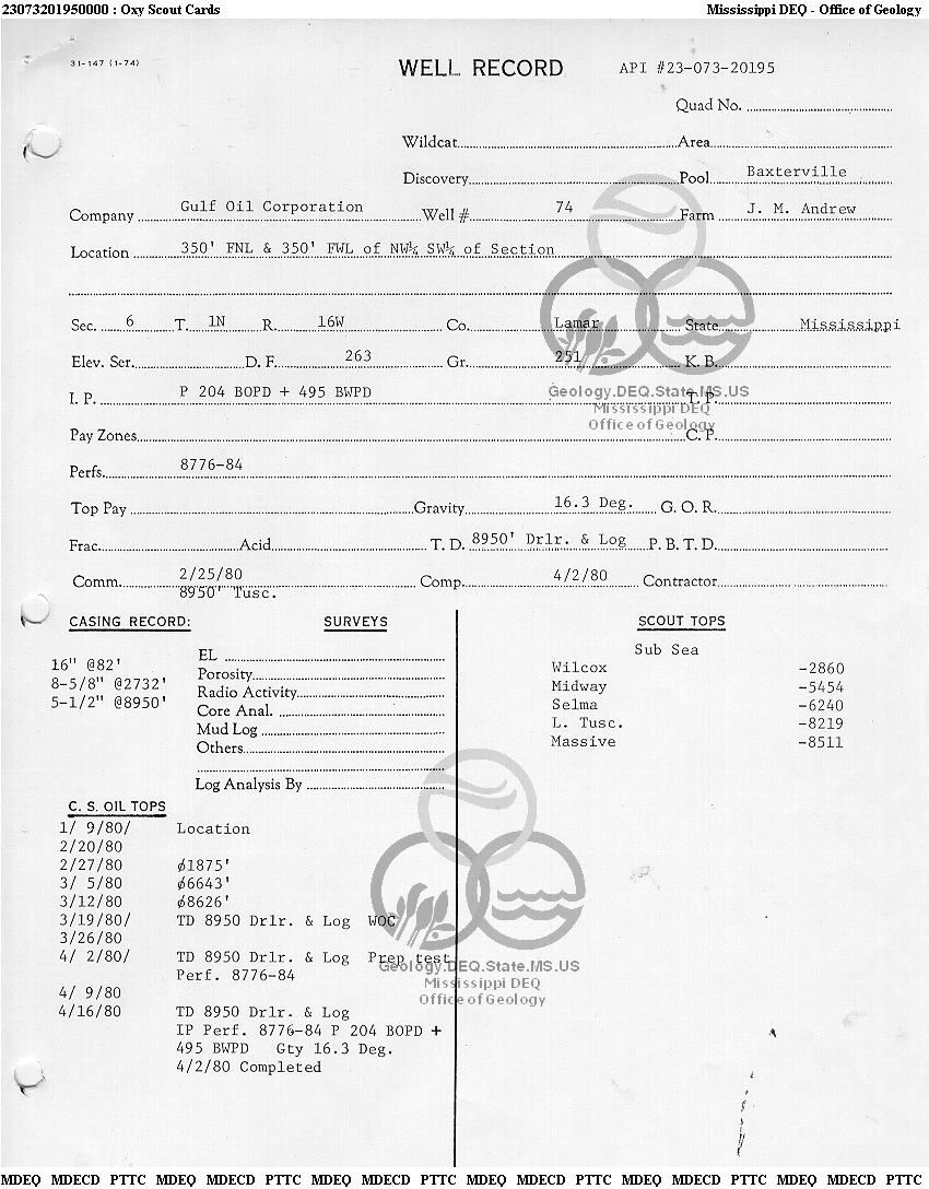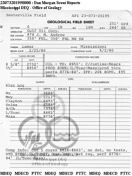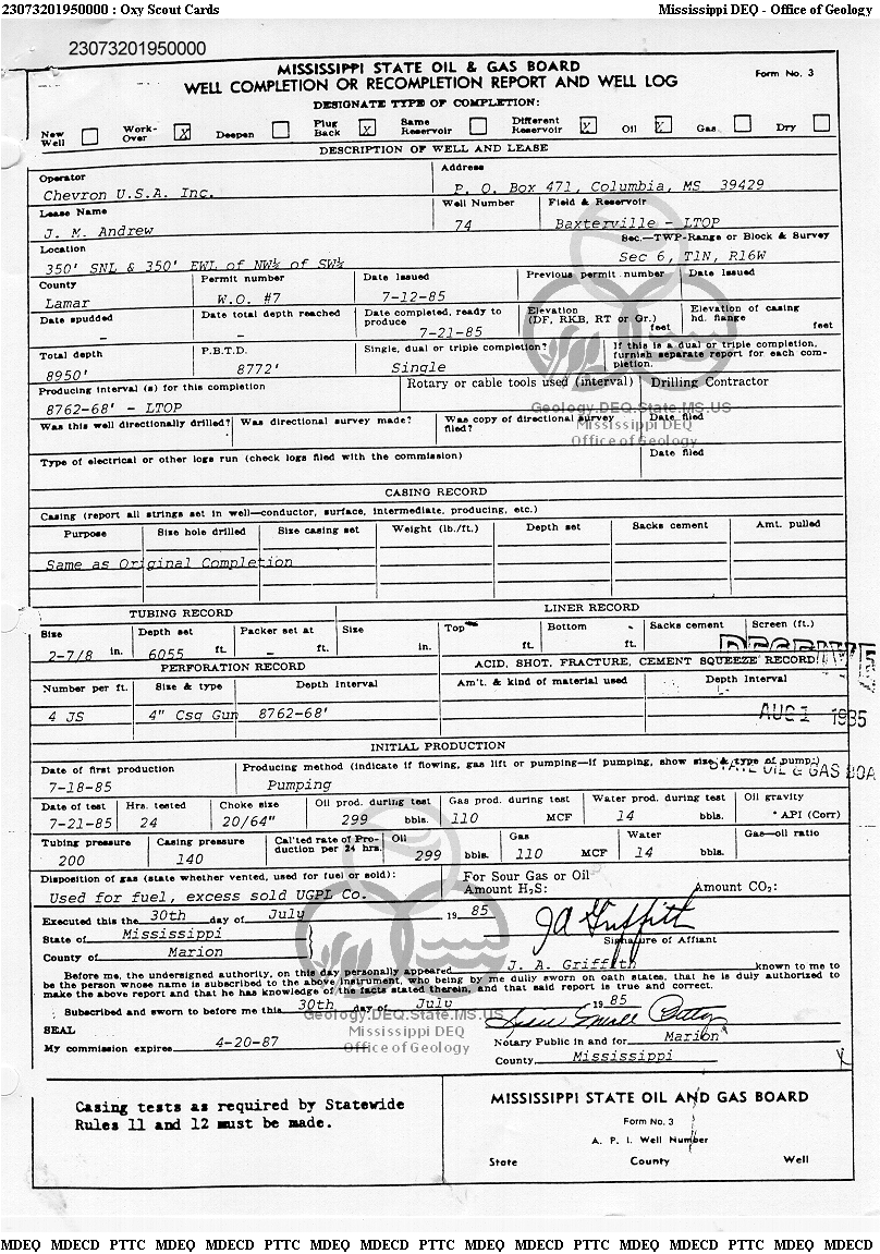 | 1 | 23073201950000 | TELLUS OPERATING GROUP LLC | J M ANDREW | 74 | Oil Production |