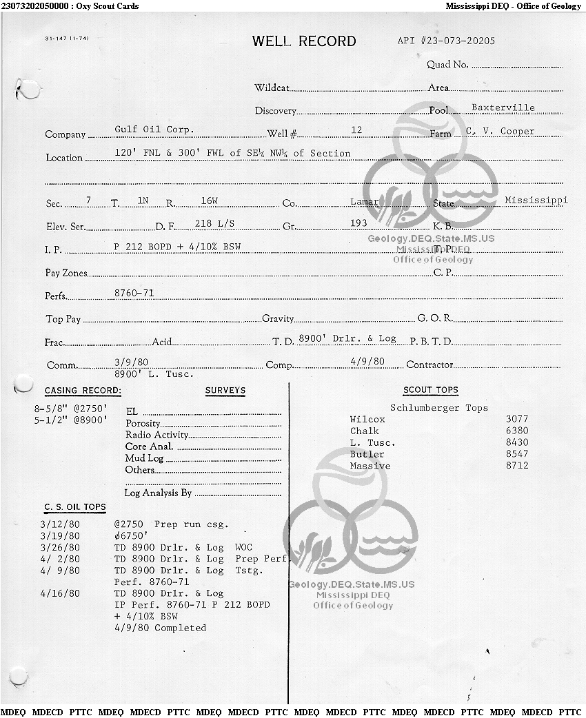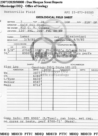 | 1 | 23073202050000 | TELLUS OPERATING GROUP LLC | C V COOPER | 12 | Oil Production |