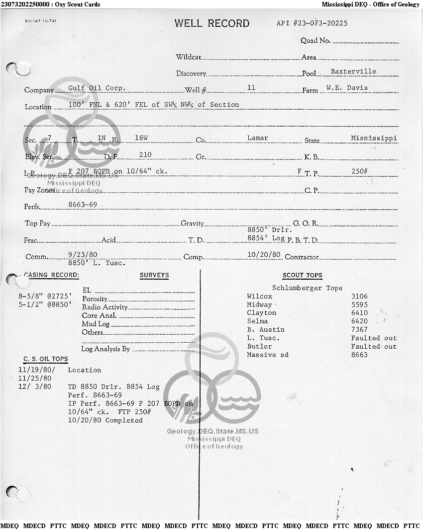 | 1 | 23073202250000 | TELLUS OPERATING GROUP LLC | W E DAVIS | 11 | Production |