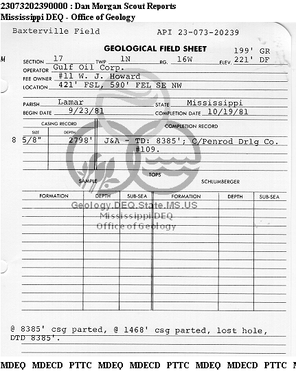 | 1 | 23073202390000 | GULF OIL CORP. | HOWARD W J | 11 | Dry Hole |