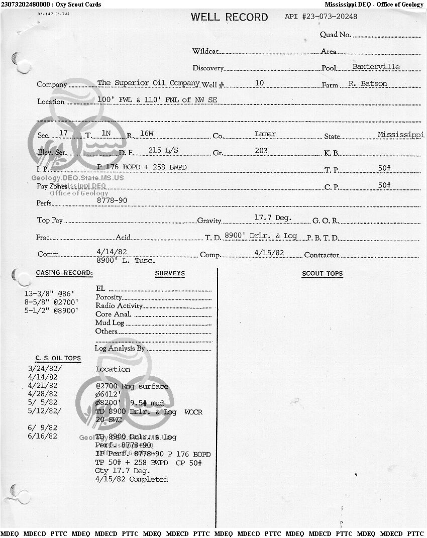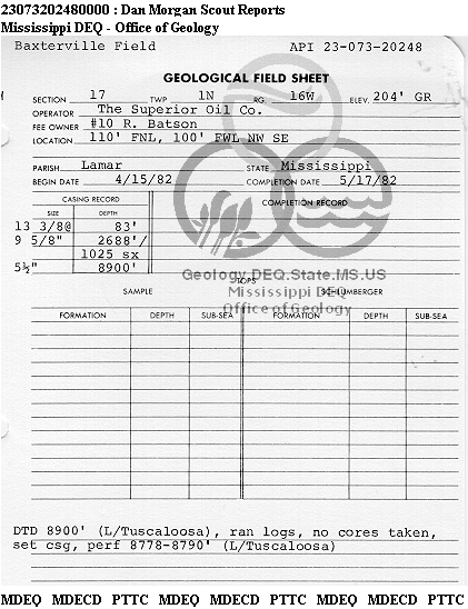 | 1 | 23073202480000 | TEXAS PETROLEUM INVESTMENT CO | BATSON R | 10 | Oil Production |