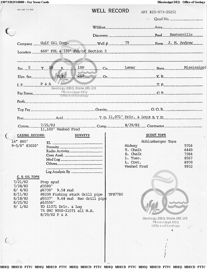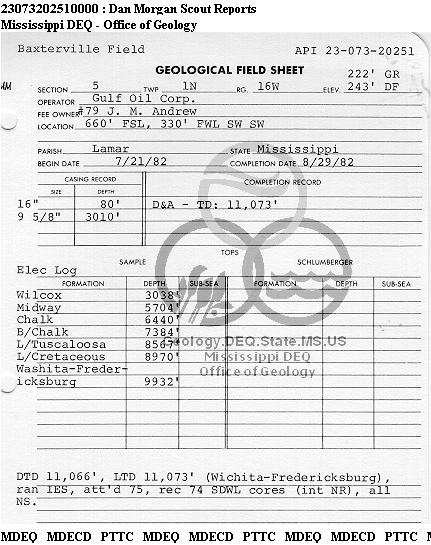 | 1 | 23073202510000 | GULF OIL CORP. | J M ANDREW | 79 | Dry Hole |