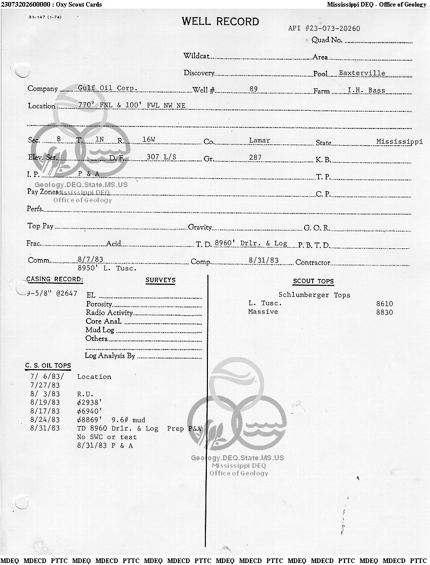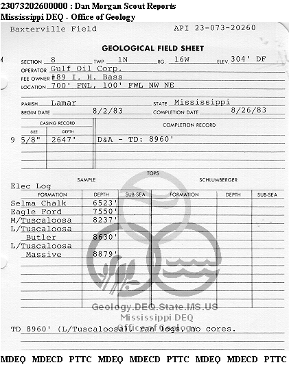 | 1 | 23073202600000 | TELLUS OPERATING GROUP LLC | BASS I H | 89 | Dry Hole |