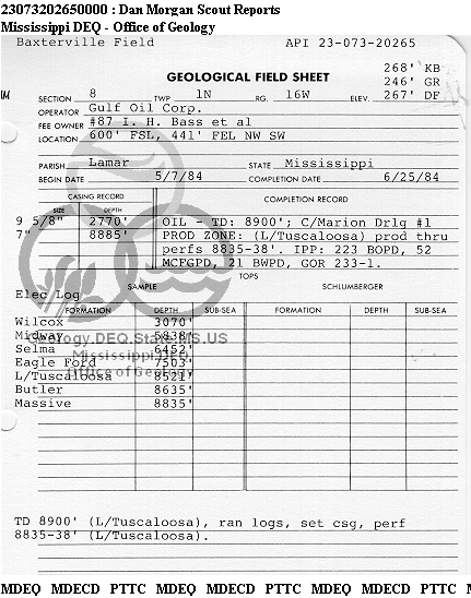 | 1 | 23073202650000 | TELLUS OPERATING GROUP LLC | I H BASS ET AL | 87 | Oil Production |