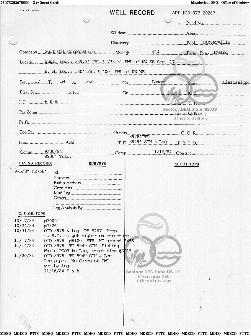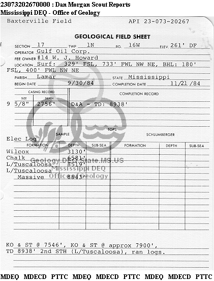 | 1 | 23073202670000 | GULF OIL CORP. | HOWARD W J | 14 | Dry Hole |