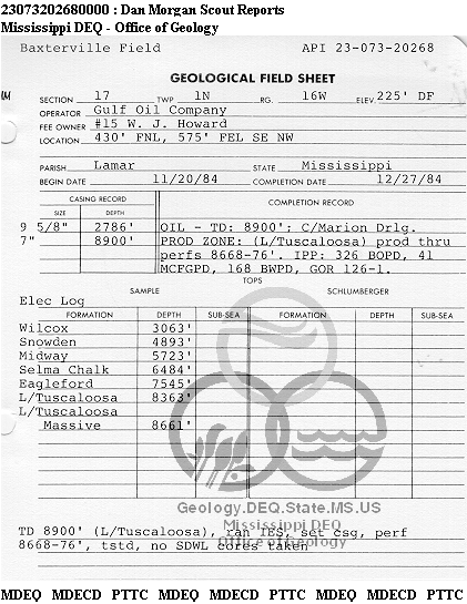 | 1 | 23073202680000 | TELLUS OPERATING GROUP LLC | W. J. HOWARD | 15 | Oil Production |