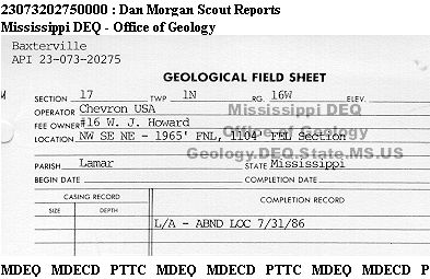 | 1 | 23073202750000 | CHEVRON U. S. A., INC. -TX | W. J. HOWARD | 16 | Expired Location |