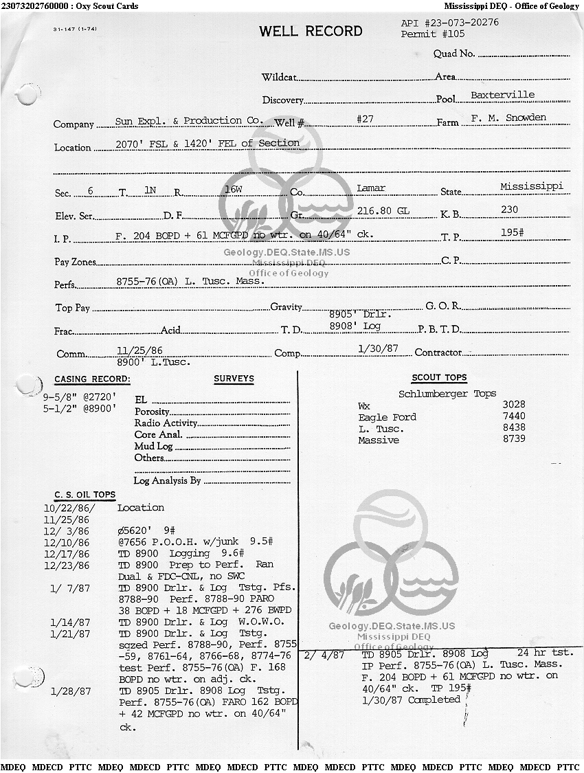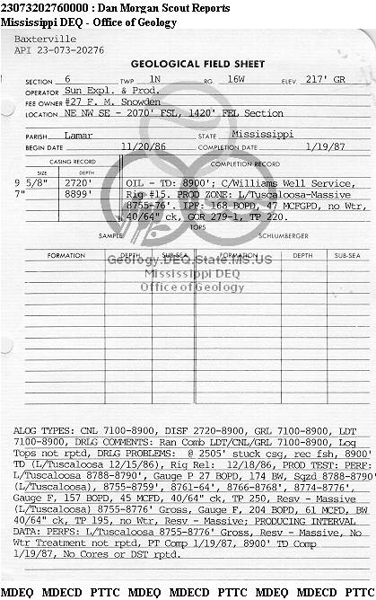 | 1 | 23073202760000 | TELLUS OPERATING GROUP LLC | SNOWDEN F M | 27 | Oil Production |