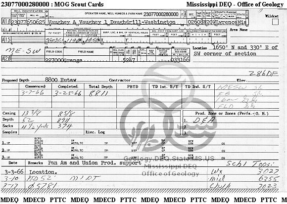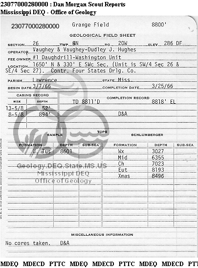 | 1 | 23077000280000 | VAUGHEY & VAUGHEY | DGHDRLL-WSHNGTN UN | 1 | Dry Hole |