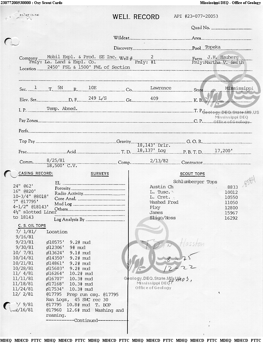 | 1 | 23077200530000 | PAR MINERALS CORP | HAUBERG JOHN H | 2 | Production |