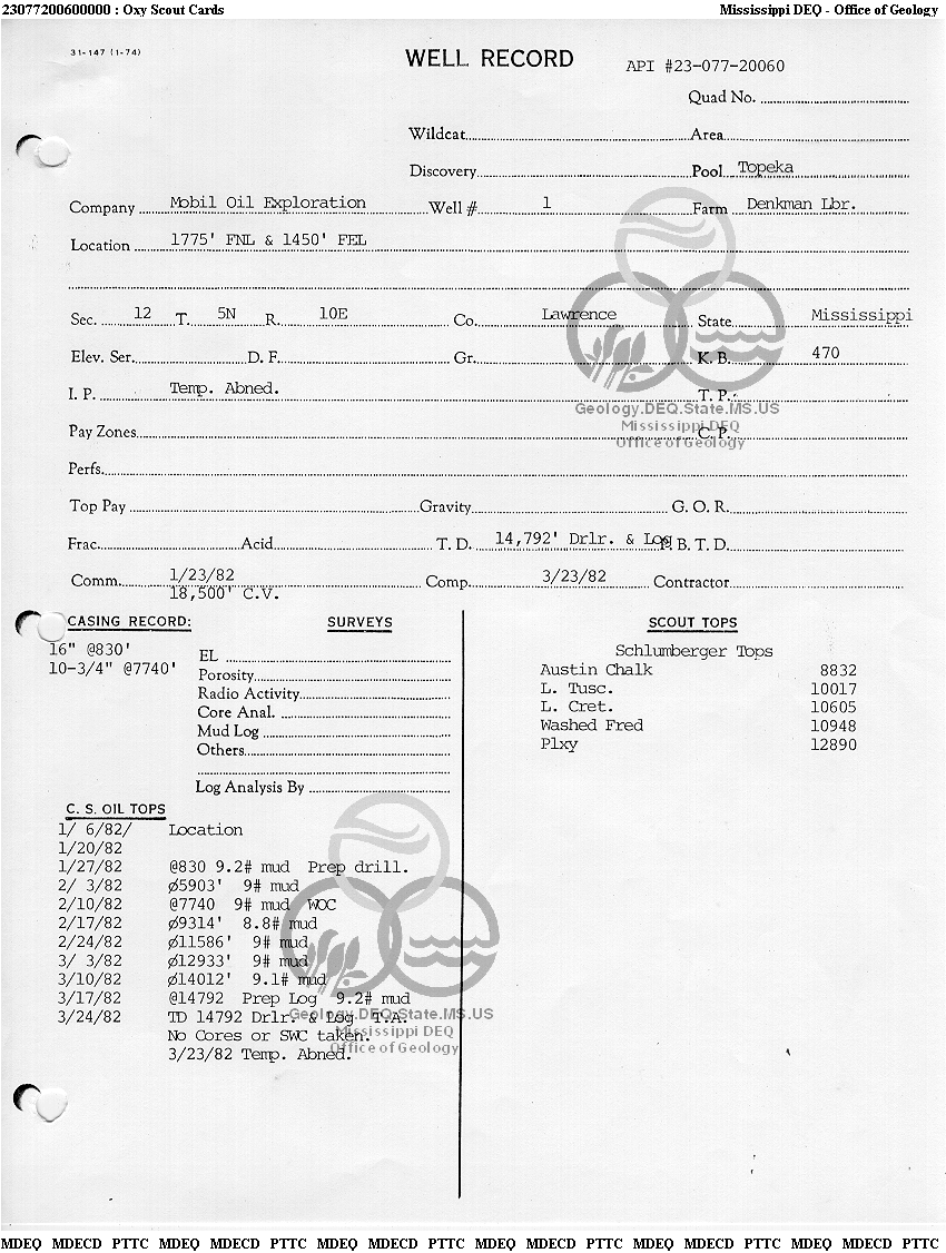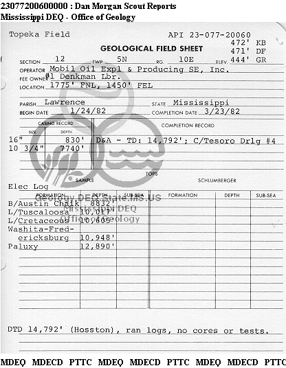 | 1 | 23077200600000 | MOBIL OIL EXPL & PROD S E | DENKMAN LBR | 1 | Dry Hole |