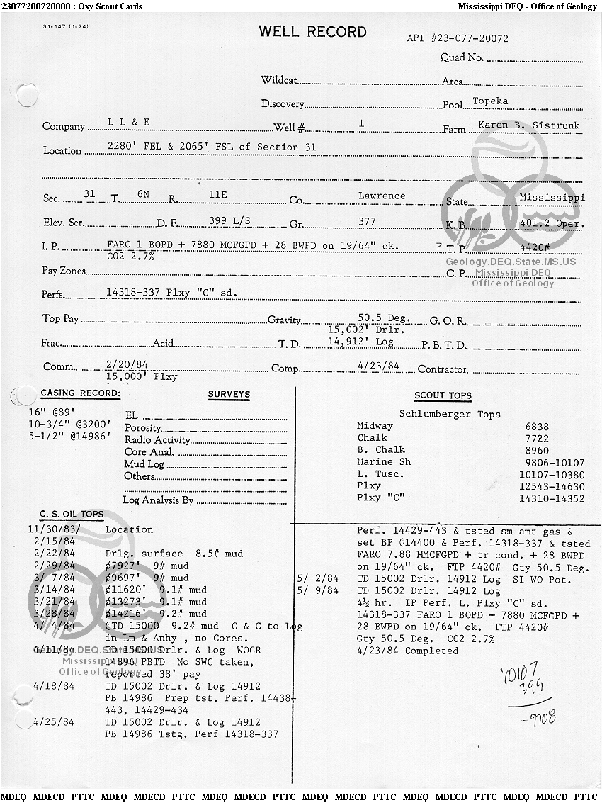 | 1 | 23077200720000 | LOUISIANA LAND & EXPLORATION CO. | SISTRUNK KAREN B | 1 | Production |