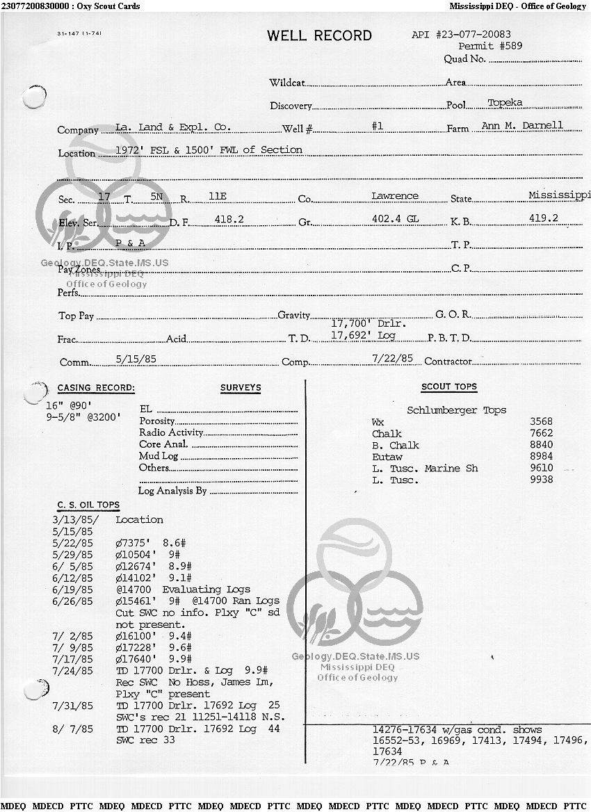 123077200830000LOUISIANA LAND & EXPLORATION CO.DARNELL ANN M1Dry Hole
