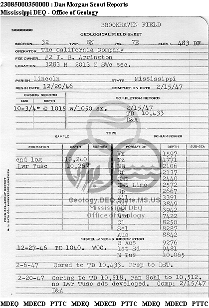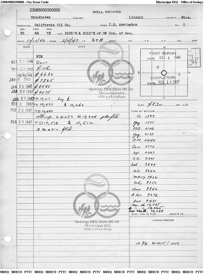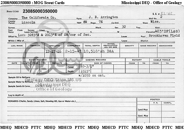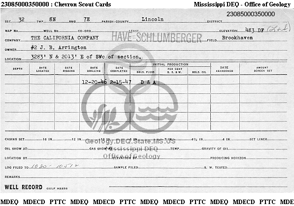 | 1 | 23085000350000 | CHEVRON U. S. A., INC. -CA | J B ARRINGTON | 2 | Dry Hole |