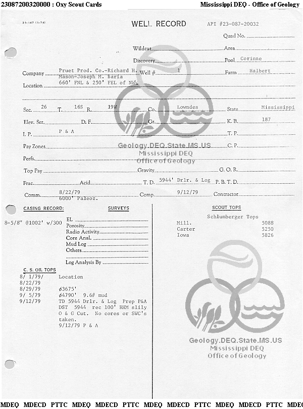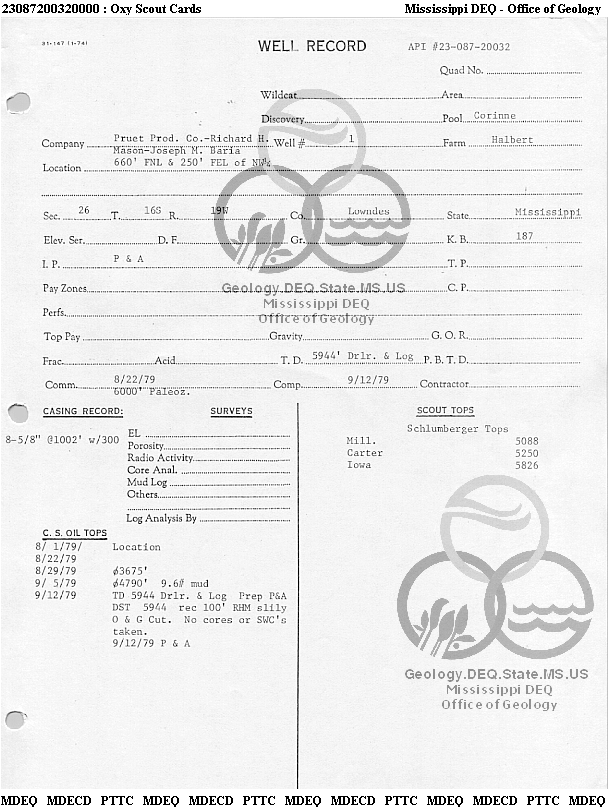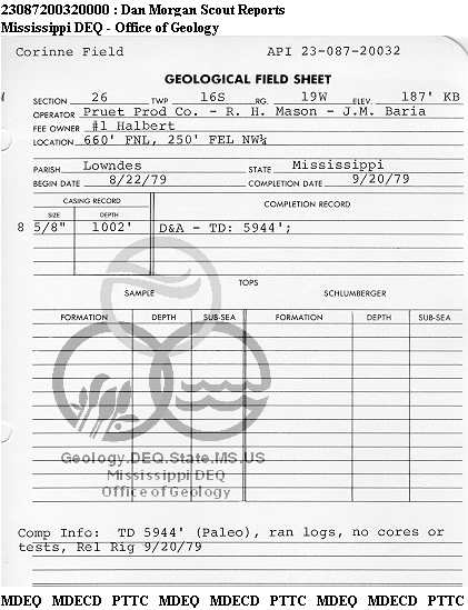 | 1 | 23087200320000 | THOMSON-MONTEITH | Halbert | 1 | Dry Hole |