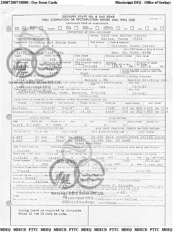 | 2 | 23087200710010 | PETRO HARVESTER OPERATING COMPANY, LLC | Columbus AFB Parcel | 4-1T | Production |