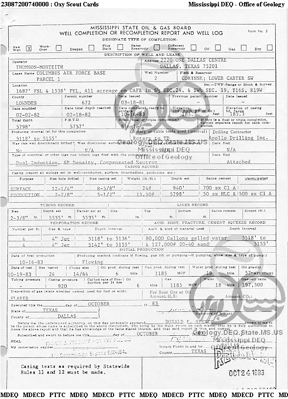 | 2 | 23087200740010 | PETRO HARVESTER OPERATING COMPANY, LLC | Columbus AFB Parcel | 1-2T | Production |