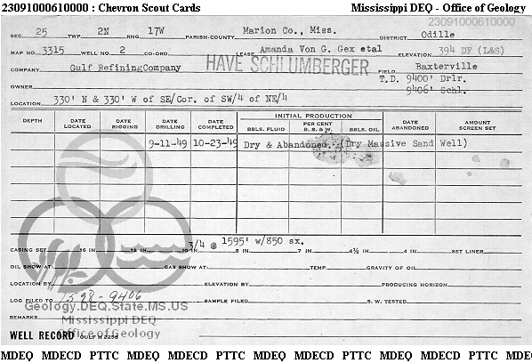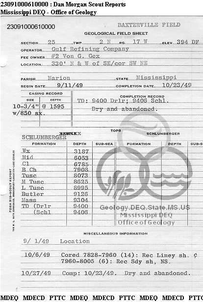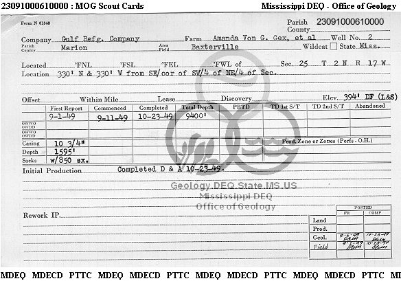 | 1 | 23091000610000 | GULF REFINING CO. | AMANDA VON G GEX | 2 | Dry Hole |