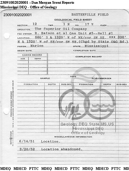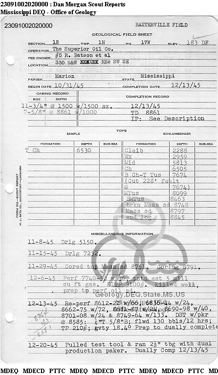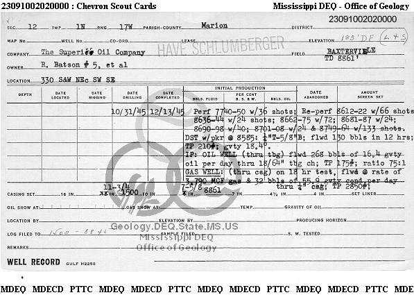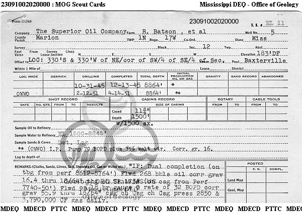 | 1 | 23091002020000 | TEXAS PETROLEUM INVESTMENT CO | R BATSON ETAL | 5 | Oil Production |