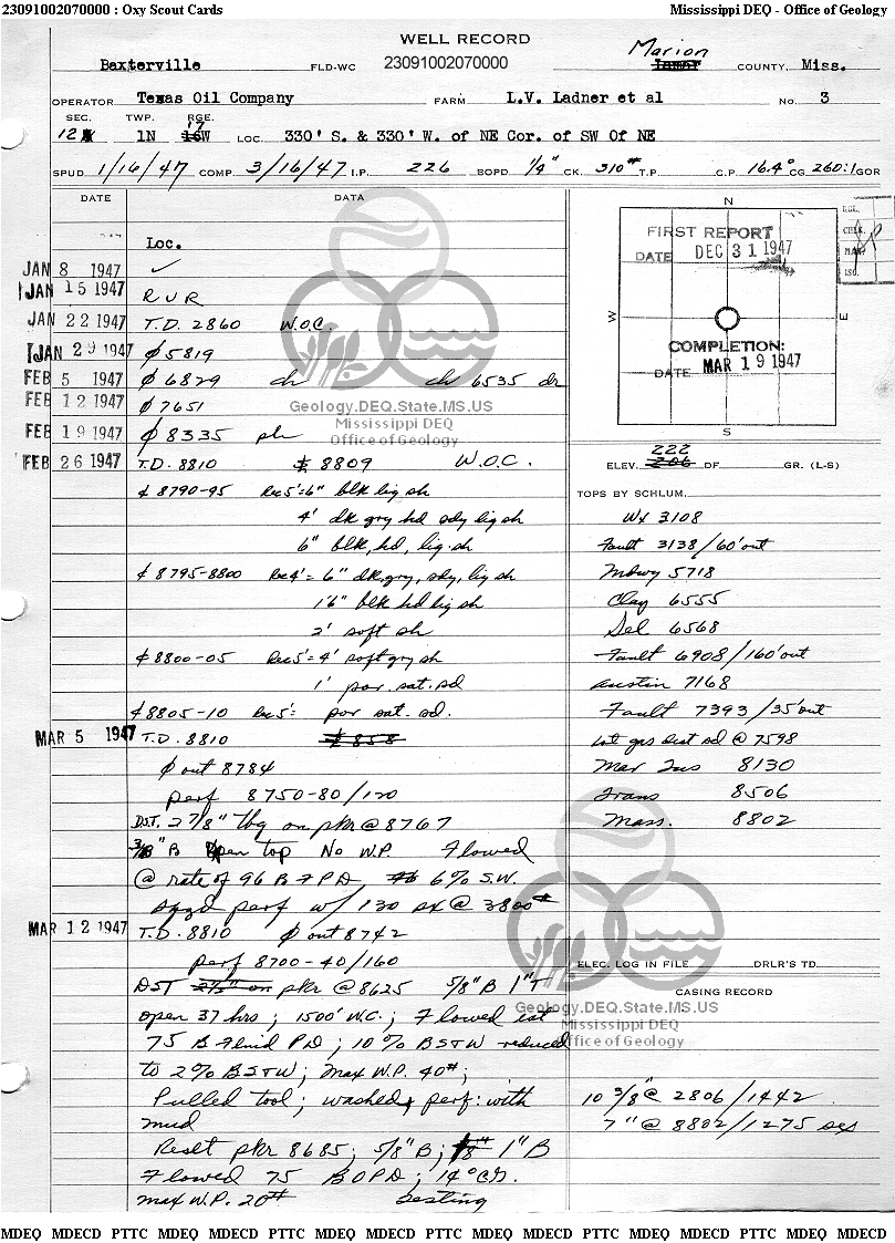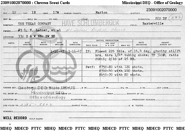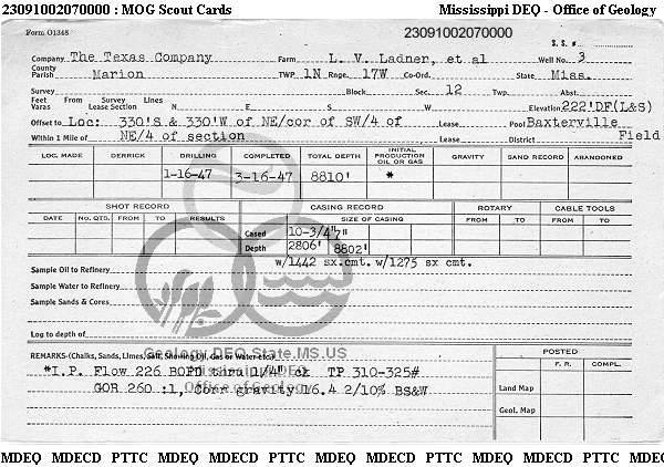 | 1 | 23091002070000 | TEXAS PETROLEUM INVESTMENT CO | LADNER BAPTIST CHURCH UNIT | 1 | Production |