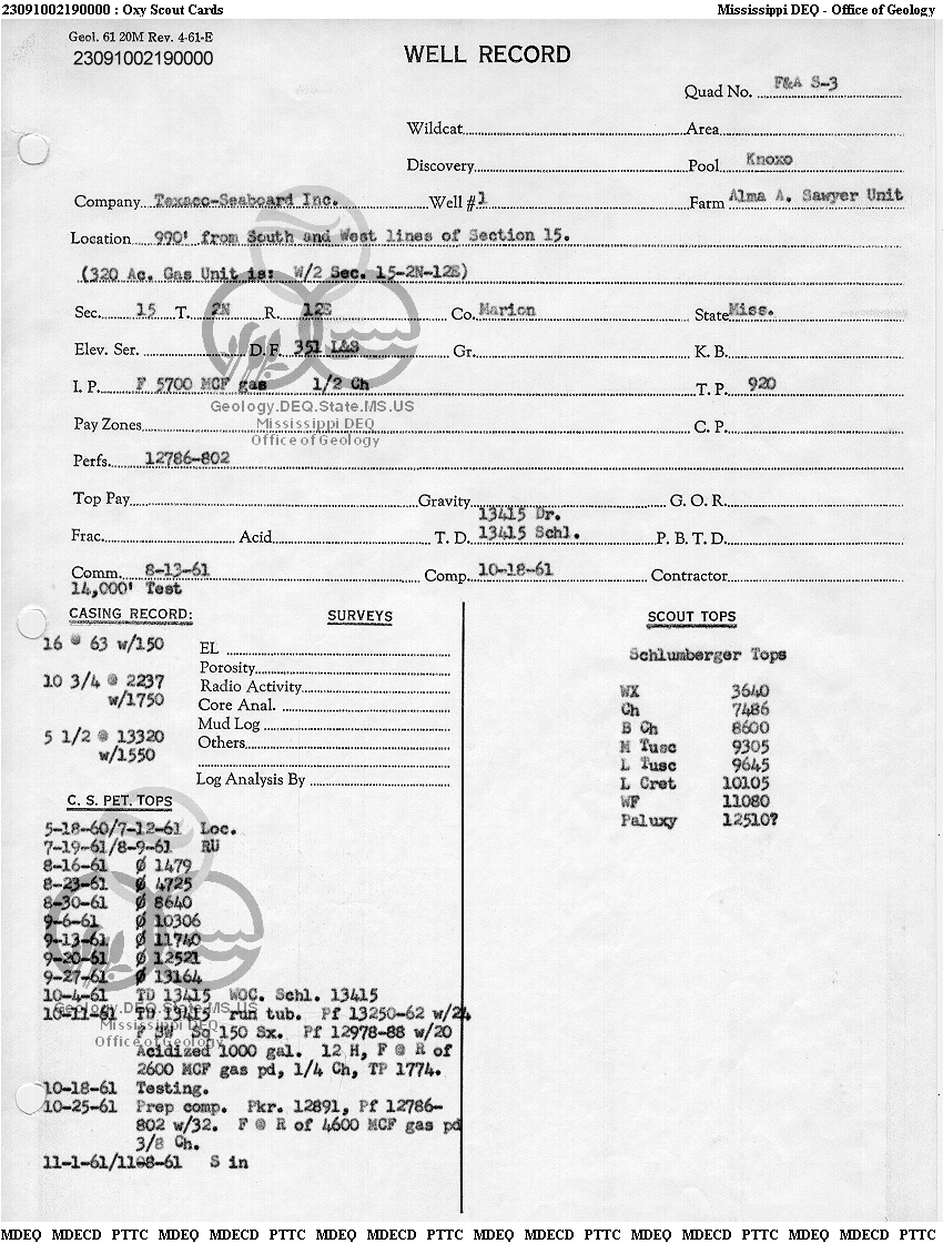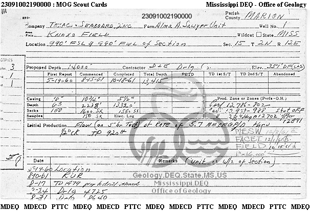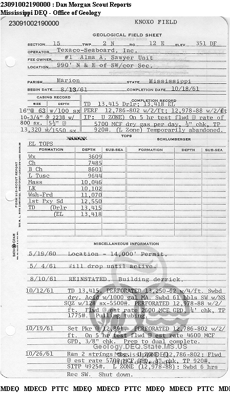 | 1 | 23091002190000 | TEXACO INC. | ALMA A SAWYER | 1 | Production |