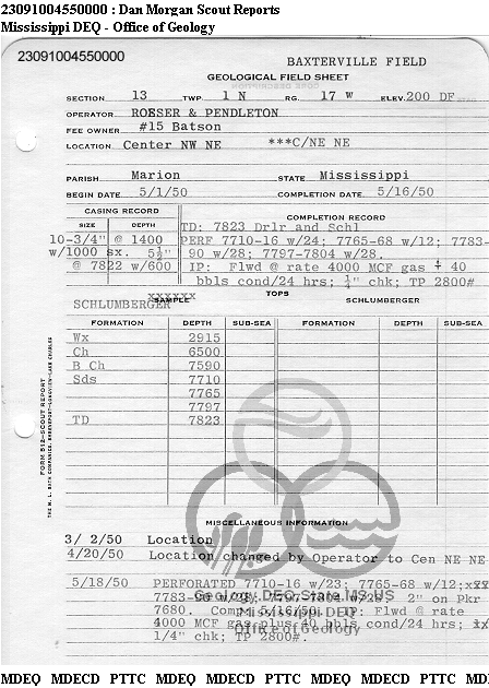 | 1 | 23091004550000 | MARSHALL YOUNG OIL CO | R. BATSON ET AL | 15 | Disposal |