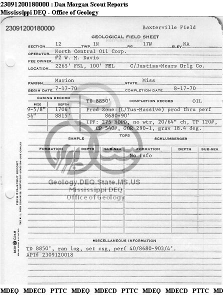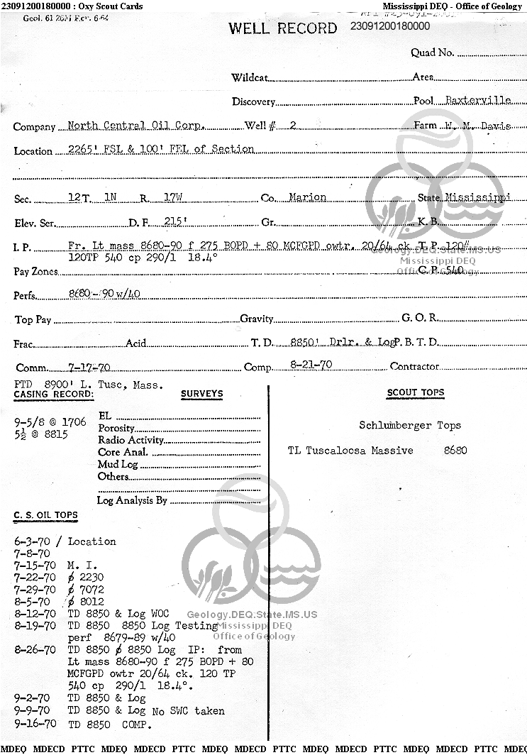 | 1 | 23091200180000 | TEXAS PETROLEUM INVESTMENT CO | W M DAVIS | 2 | Oil Production |
