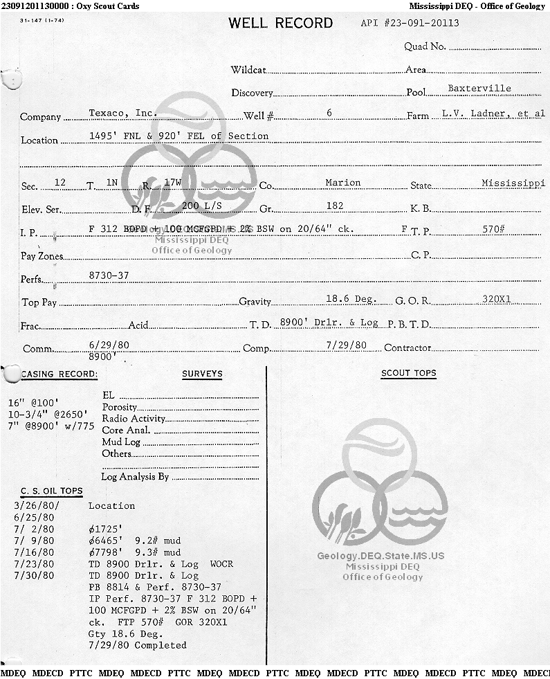| 1 | 23091201130000 | TEXAS PETROLEUM INVESTMENT CO | LADNER L V ETAL | 6 | Oil Production |