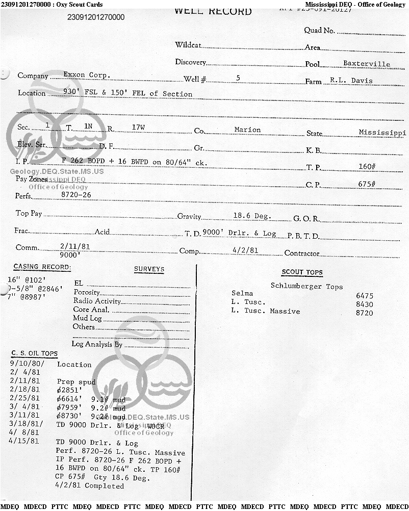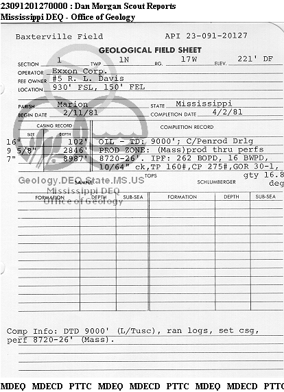 | 1 | 23091201270000 | TEXAS PETROLEUM INVESTMENT CO | DAVIS R L | 5 | Oil Production |