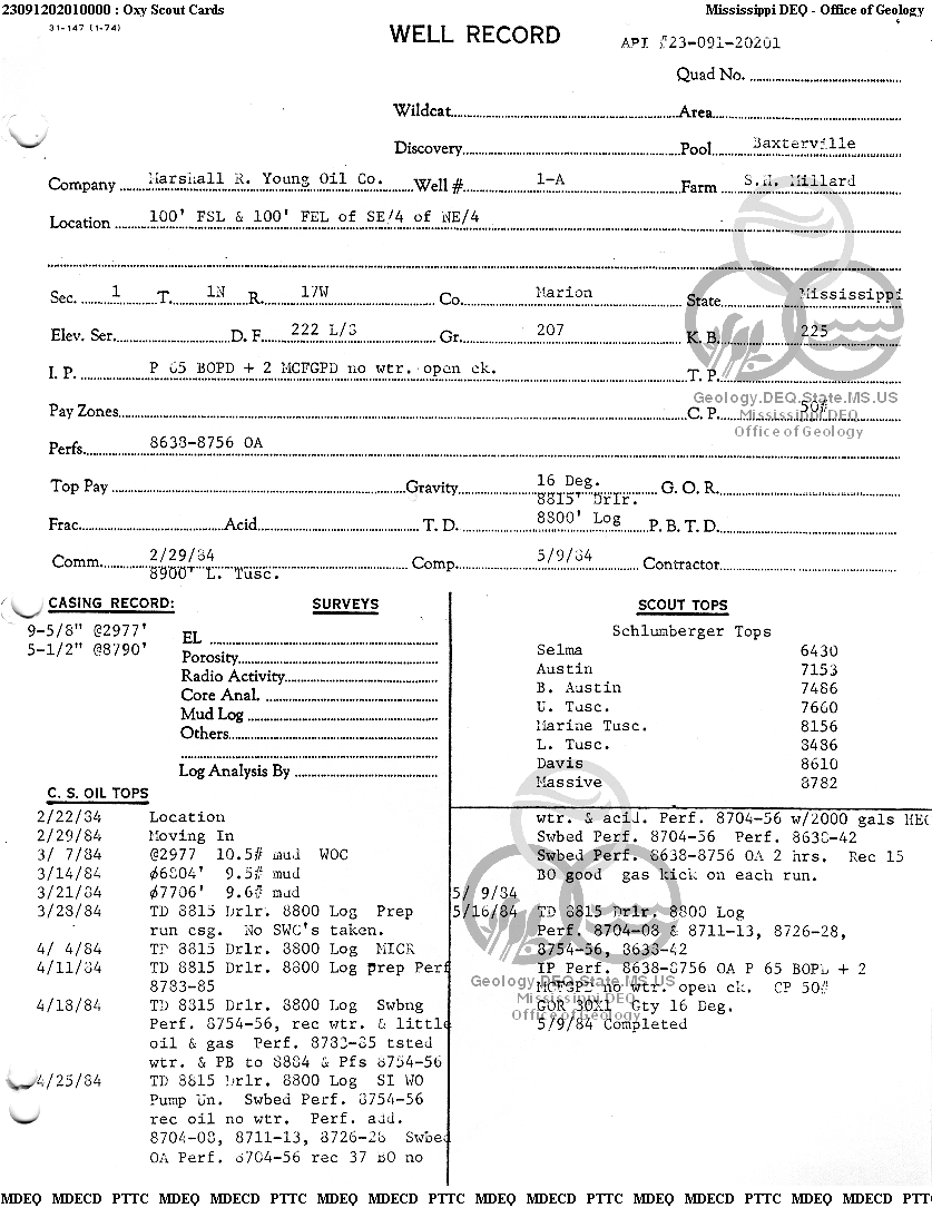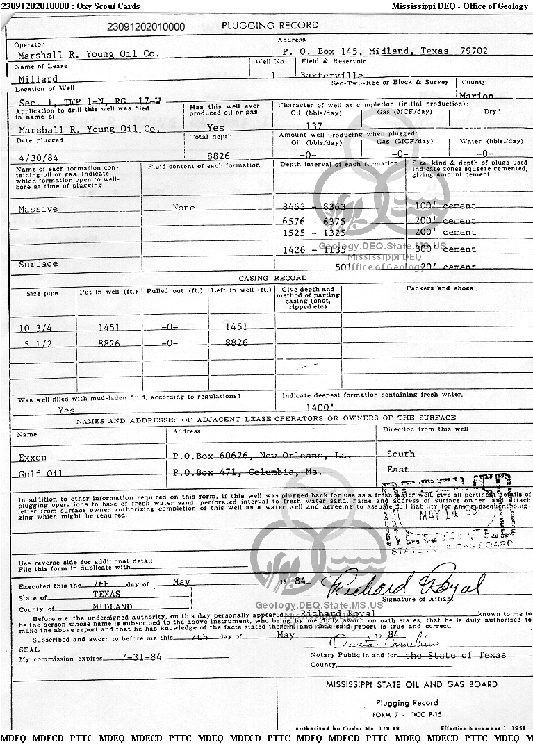 | 1 | 23091202010000 | TEXAS PETROLEUM INVESTMENT CO | MILLARD S H | 1-A | Production |