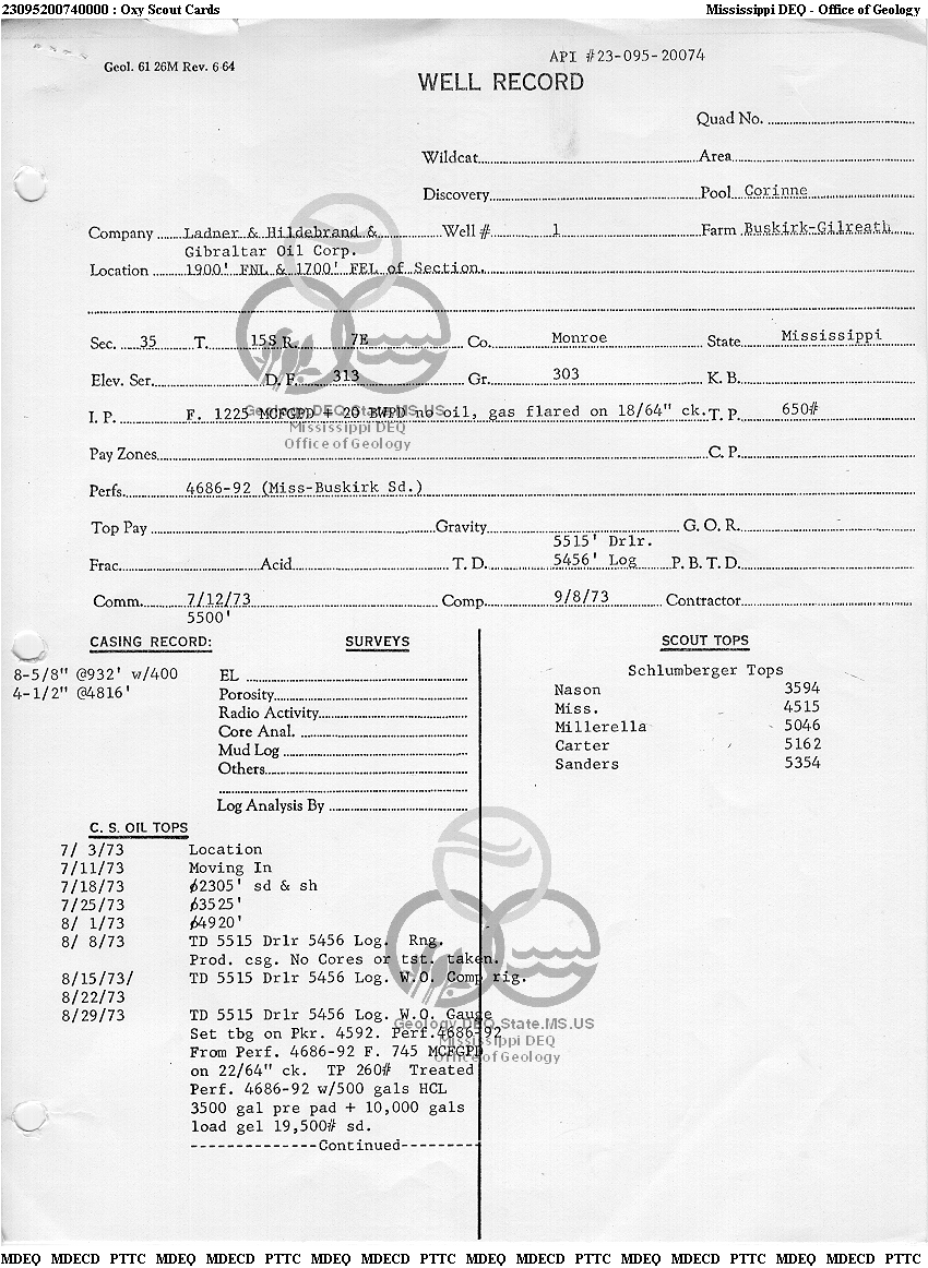 | 1 | 23095200740000 | NASON, HOWARD G. | Buskirk-Gilreath | 1 | Production |