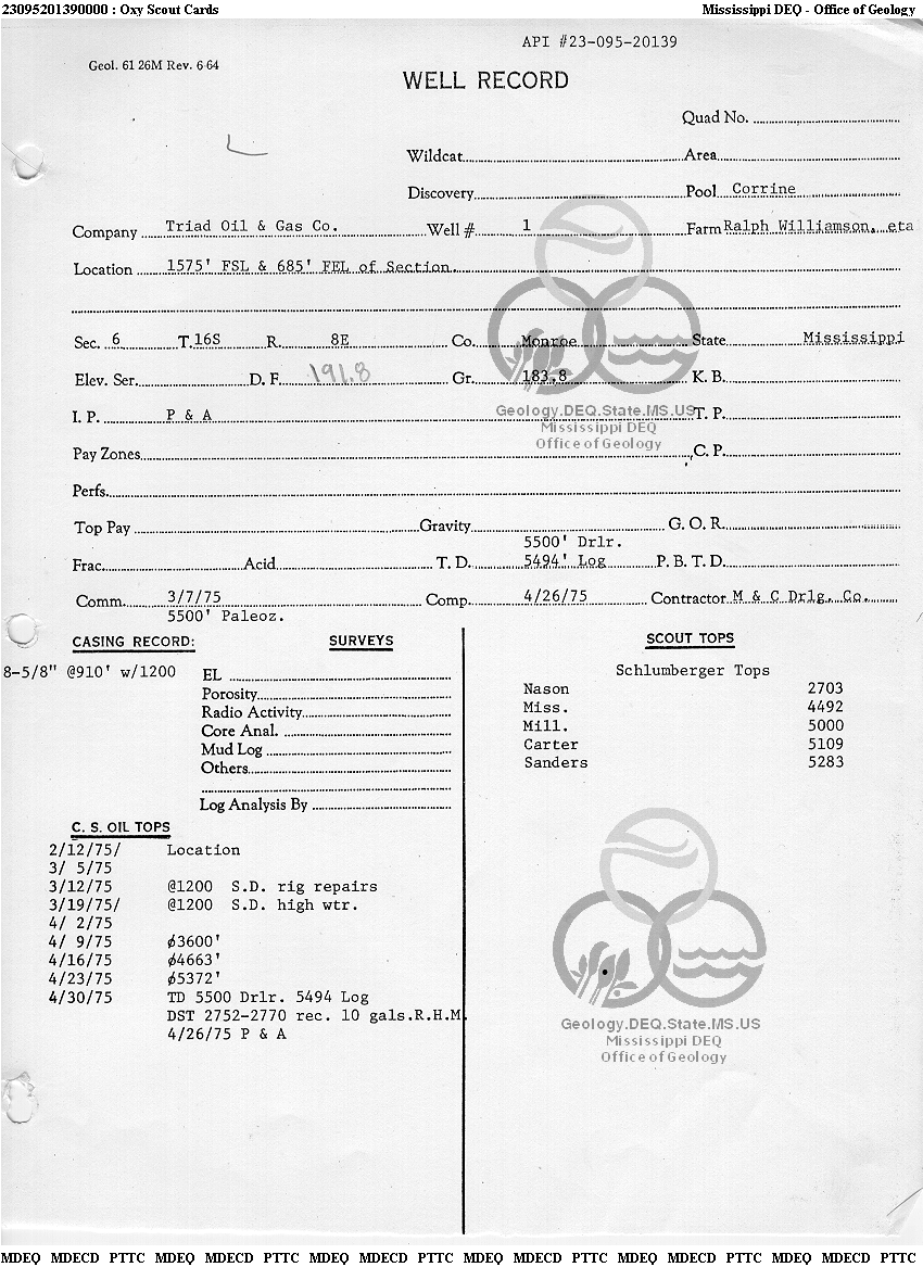 | 1 | 23095201390000 | TRIAD OIL & GAS CO INC | R. Williamson et al | 1 | Dry Hole |