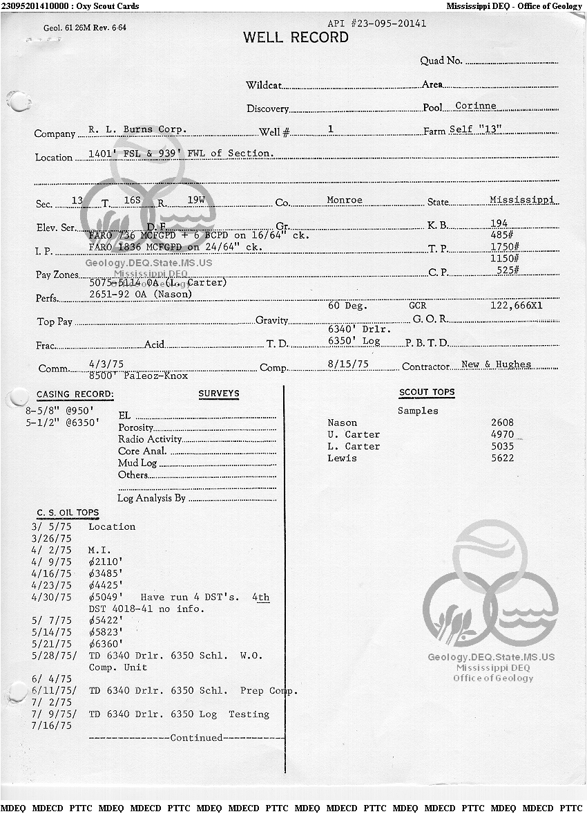 | 23095201410000 | Misc Logs | Induction Electric Log | view | 1 |