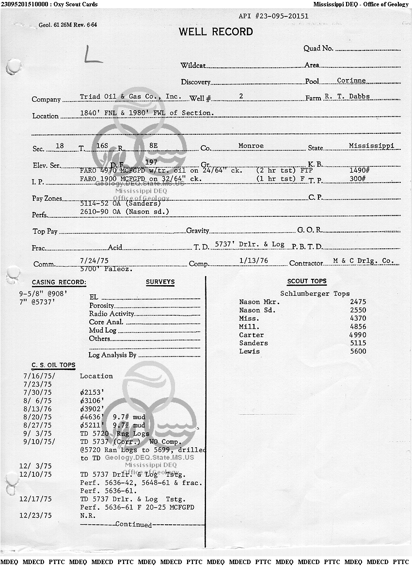 | 2 | 23095201510010 | SAMSON RESOURCES CO | R. T. Dabbs | 2LT | Production |